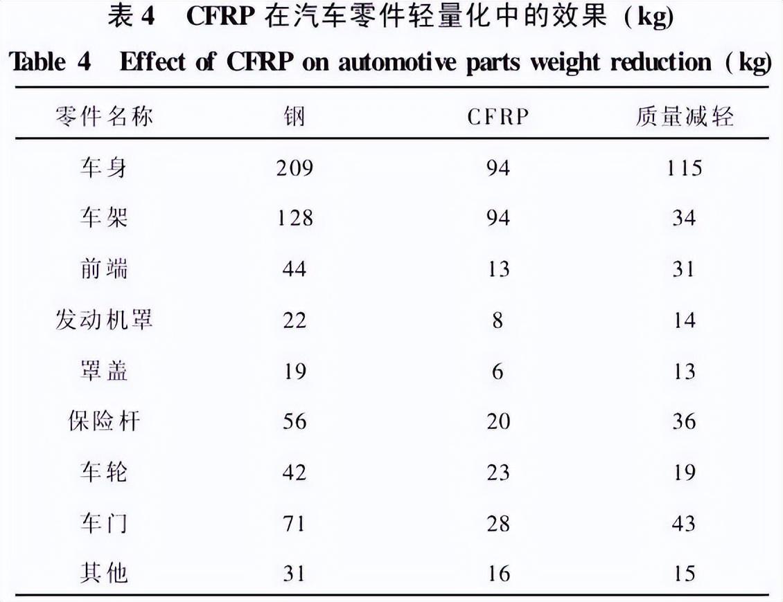 碳纖維復(fù)合材料(CFRP)、主要特色:質(zhì)量小、強(qiáng)度高、剛性高、耐蠕變與耐腐蝕性能良好,是很有潛力的汽車用輕量化材料。