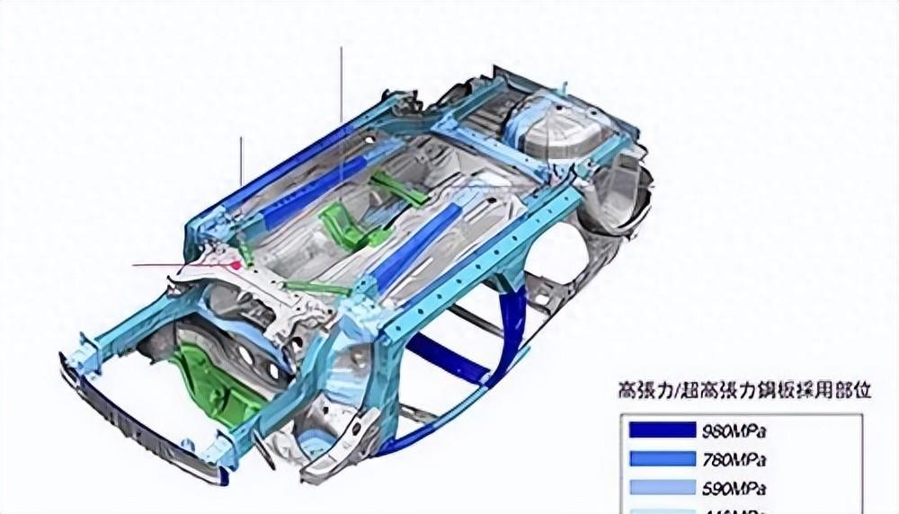 隨著正面撞擊、側(cè)面撞擊的撞擊安全性標(biāo)準(zhǔn)的提高,結(jié)構(gòu)件、加強(qiáng)件等主要使用590MPa級(jí)高強(qiáng)度鋼板,也有廠家使用780MPa級(jí)、980MPa級(jí)高強(qiáng)度鋼板。