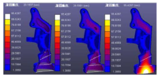 圖14 轉(zhuǎn)向節(jié)擠壓鑄造件數(shù)值模擬結(jié)果