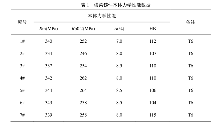 國內(nèi)沈陽鑄造研究所利用該工藝技術(shù)為某電動(dòng)汽車制造企業(yè)開發(fā)出底盤橫梁鑄件(如圖1所示),經(jīng)檢驗(yàn),鑄件本體力學(xué)性能可滿足設(shè)計(jì)單位提出的技術(shù)指標(biāo)要求(表1為橫梁鑄件本體解剖性能),并經(jīng)用戶單位臺(tái)架檢測,鑄件可以滿足裝車要求。文章源自好焊孫輝博客 http://m.surpass-tech.com.cn好焊孫輝-http://m.surpass-tech.com.cn/weldgyzb/autoyazhu202411146.html
