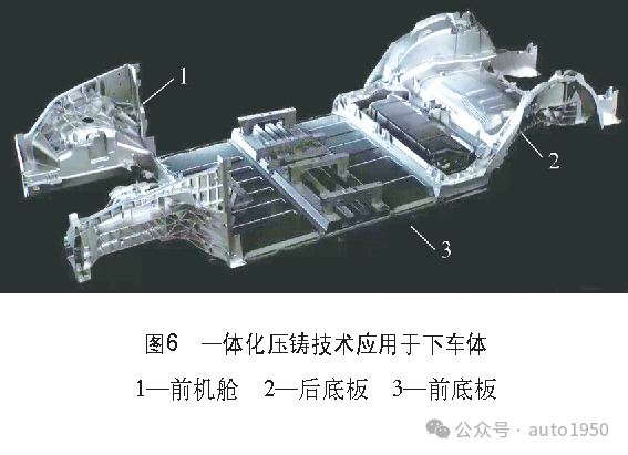 目前,一體化壓鑄技術應用集中在乘用車白車身的下車體,其中后底板已經在多款車型上實現量產,前機艙和中底板已進入準量產階段,大尺寸電池殼體和非承載式車身車架正處于開發階段,而處在技術前沿的一體化下車體(見圖6)、一體化上車體、一體化側位,甚至一體化壓鑄車身(見圖7),已經列入研發或論證日程。